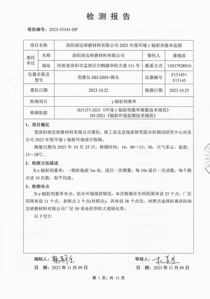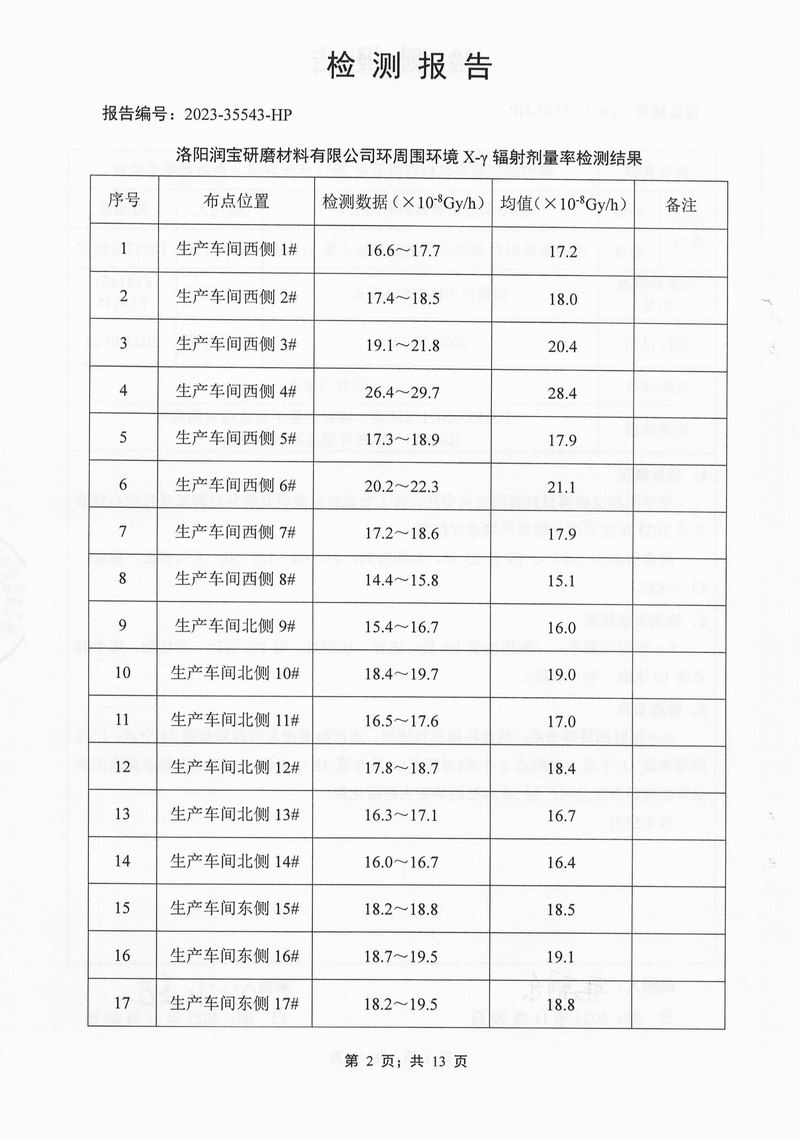 洛陽潤寶研磨材料有限公司輻射檢測報告